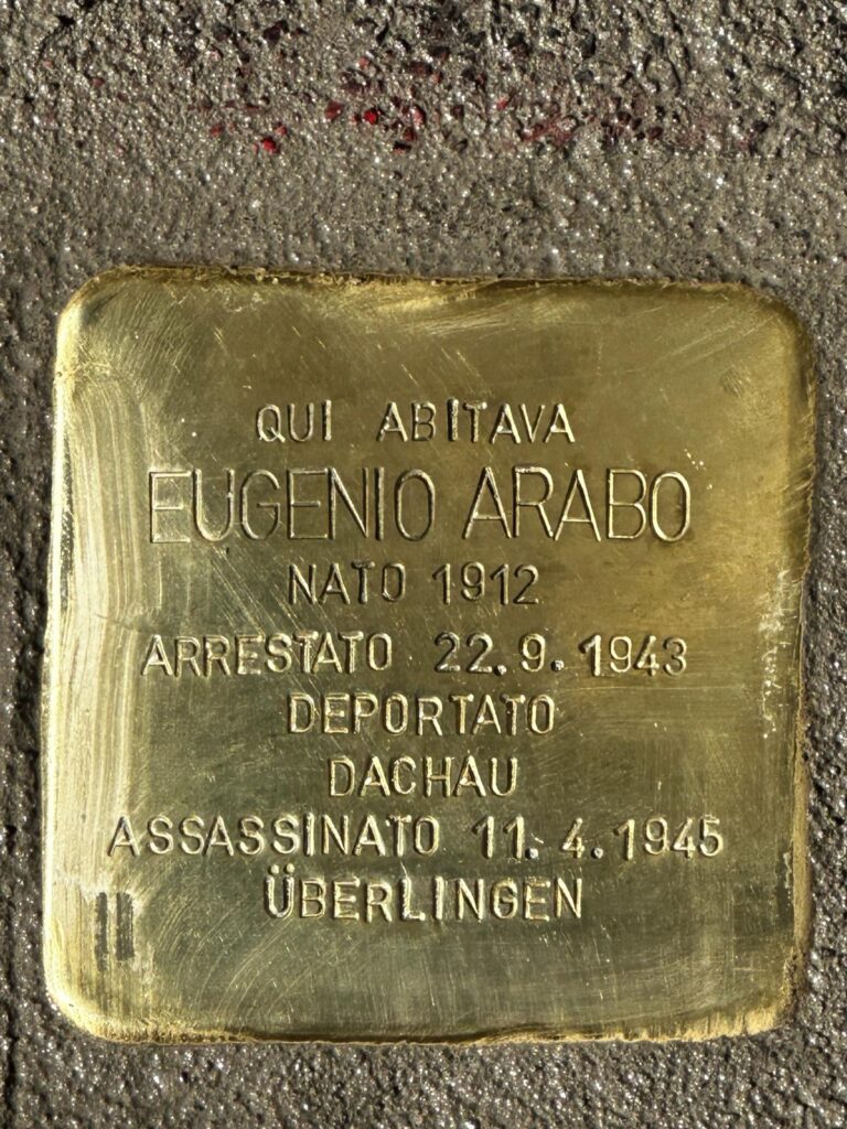 Quarta pietra d’inciampo in Via Privata Leonardo Bruni, 13 dedicata a Eugenio Arabo.