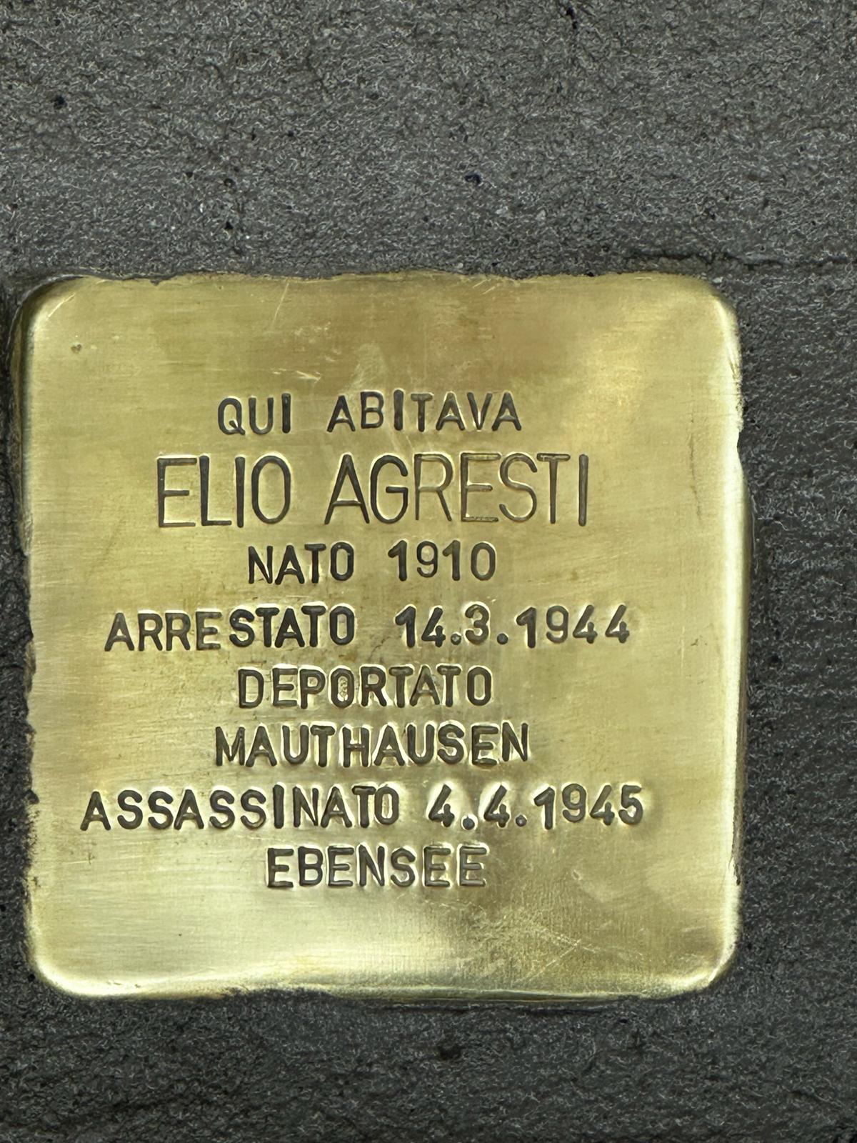 Elio Agresti, figlio di Alceo, nasce a Montalcino (Siena) il 16 novembre 1910. Trasferitosi a Milano in via Bonomi lavora come meccanico aggiustatore alla Breda ed è sposato con Teresa Lanzoni, con la quale ha una figlia.